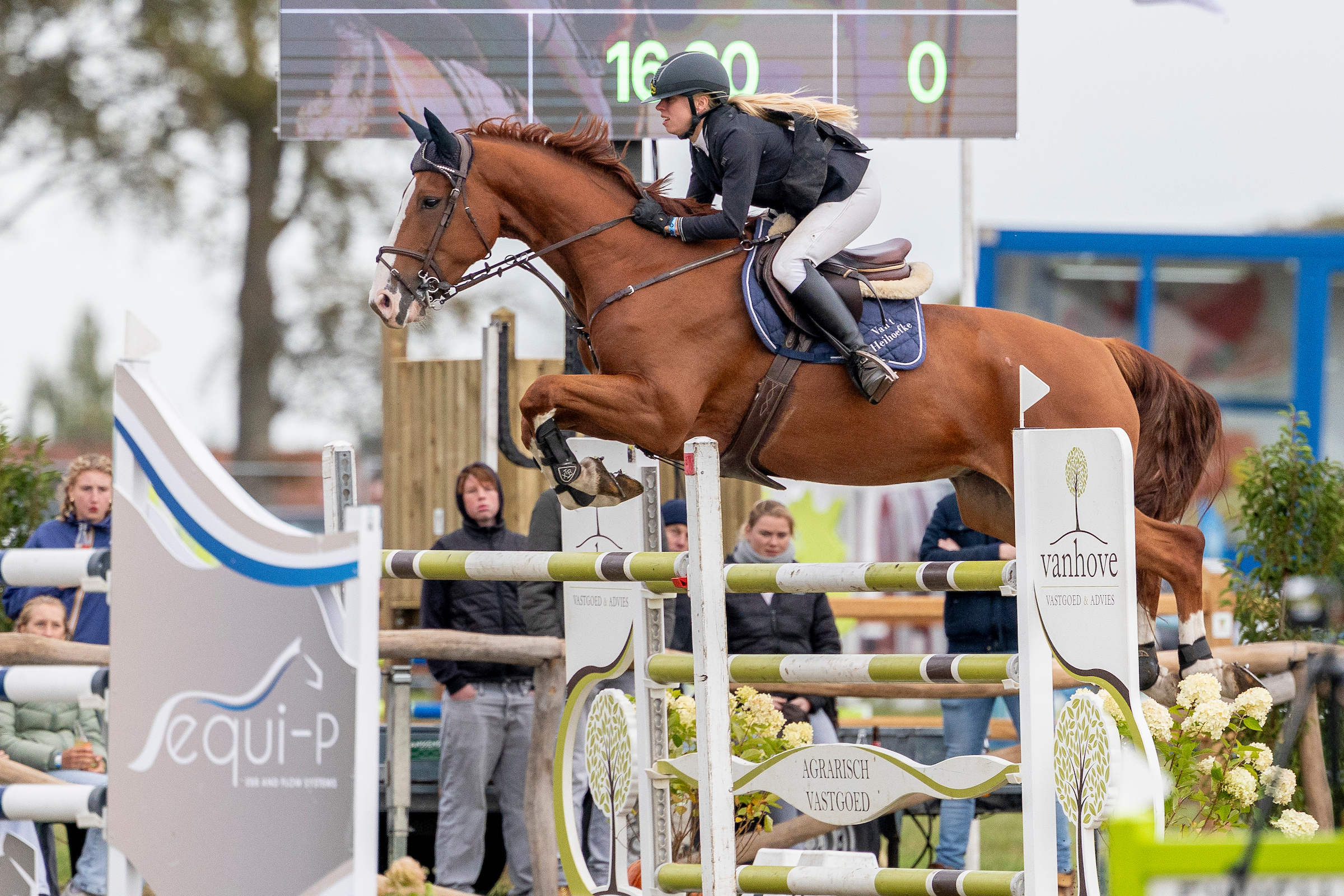 Negen combinaties wisten zich na de twee omlopen te plaatsen voor de barrage van de springklasse Zwaar. De top vier bleef daarin foutloos. De winnende ronde werd neergezet door Lotte Rombouts en de 7-jarige BWP merrie Sky van ’t Heihoefke. Een fokproduct van Dirk Rombouts met als vader Andiamo Semilly. Rombouts bracht haar Sky de voorbije jaren van jong paard uit naar winst op het nationaal kampioenschap.