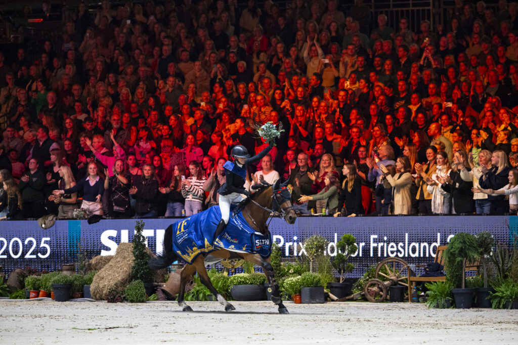 Indoor Friesland 2025 zit erop! De afsluitende SLTN Grand Prix over een hoogte van 1,55 m, werd zaterdagavond verreden. Het WTC Expo was tot de nok toe gevuld en de sfeer was ouderwets gezellig. Slechts vier combinaties mochten terugkomen voor de barrage, drie uit Nederland en één uit Egypte. De overwinning ging naar enige de dame in het gezelschap. Jody van Gerwen en de tienjarige BWP ruin Panamera Sth (v. Jonsaunier Dwergse Hagen) bleven als enige foutloos. Ze kwamen over de finish in de tijd van 36.84 seconden.