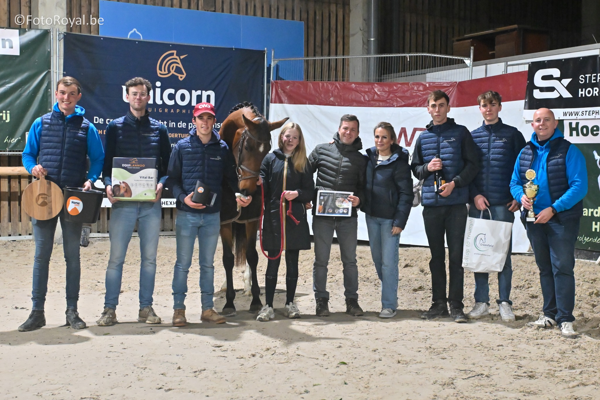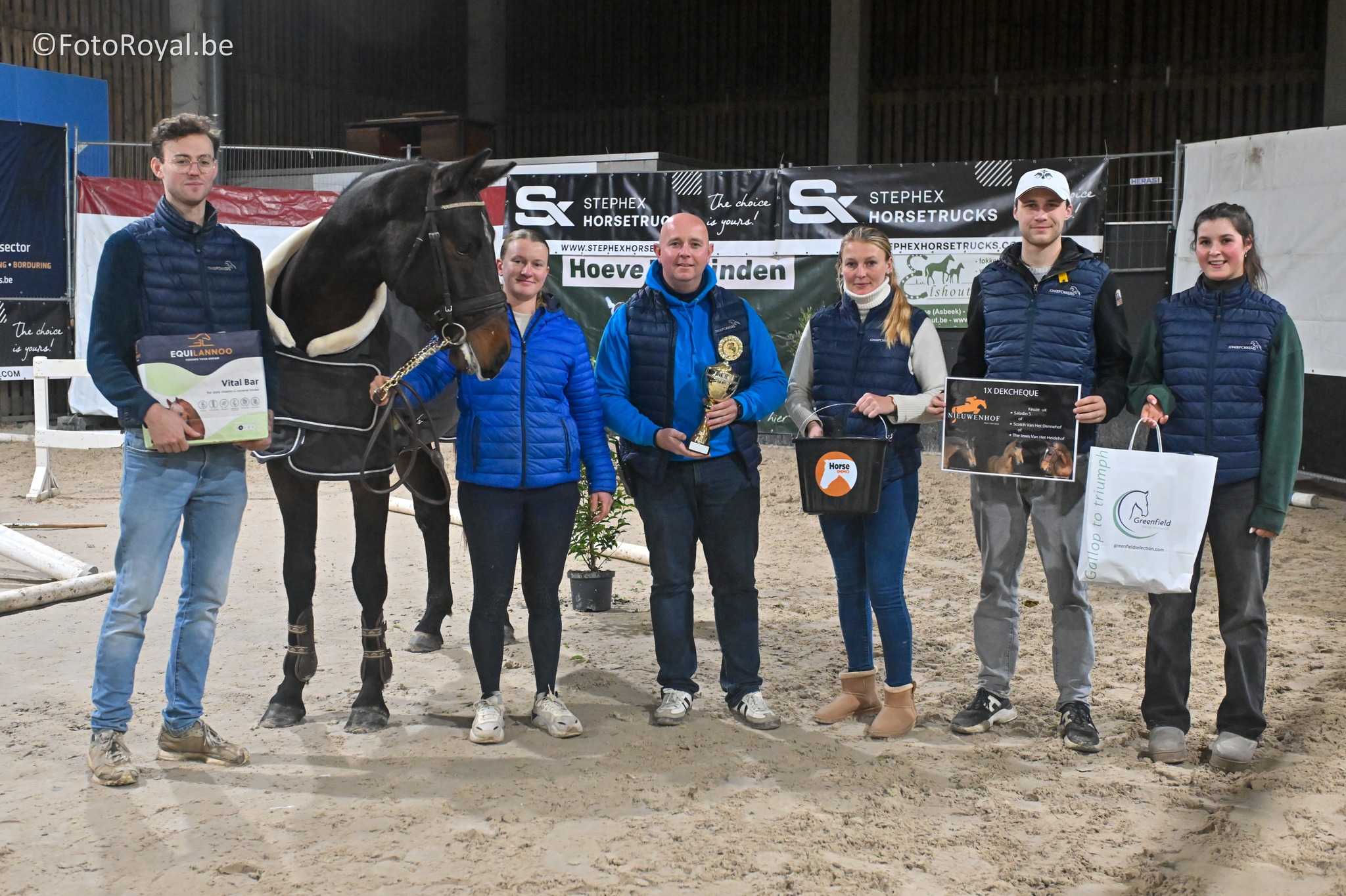 In een reeks voor vrouwelijke 2-jarigen, met meer dan 50 deelnemers, ging de overwinning naar Peter Boelens zijn fokproduct Nova van de Vrombautshoeve Z (v. Nobel van de Vrombautshoeve Z). Sofie en Guy Van Aken, die vorig jaar wisten te winnen met Willy Wonka van den Dries, werden dit keer tweede met de halfzus Athena van den Dries. De dochter van Pegase van ’t Ruytershof werd gefokt uit de merrie Karmelita van den Dries, die met Jeroen De Winter op 1m60 niveau actief was. Karmelita is een halfzus van Hope van ’t Zorgvliet, Equita van ’t Zorgvliet en Cartouche van ’t Zorgvliet (Rahmannshof’ Baluga). Pierre Heyvaert zijn Zangersheide fokproduct Cayenne P Z (v. Chacco Blue) eindigde op een derde plaats. Begin dit jaar werd de halfbroer Urbain vh Eggehoph Z (v. United Touch S) goedgekeurd bij BWP. In de moederlijn zien we de 1m60 springende paarden Good Luck (Cian O’Connor) en Kismet 50 (Candice King). Twee paarden deelden de vierde plaats. Dat waren Olitha v’t Hof van Dorslaer Z (v. Orak d’Hamwyck) en Aranka DC (v. Mosito van het Hellehof) van fokkers Jean Van Dorslaer en Geert De Cooman. Aranka komt uit de moederlijn van H&M Que Sera JW van de Moerhoeve die actief is onder het zadel van Nicola Philippaerts.