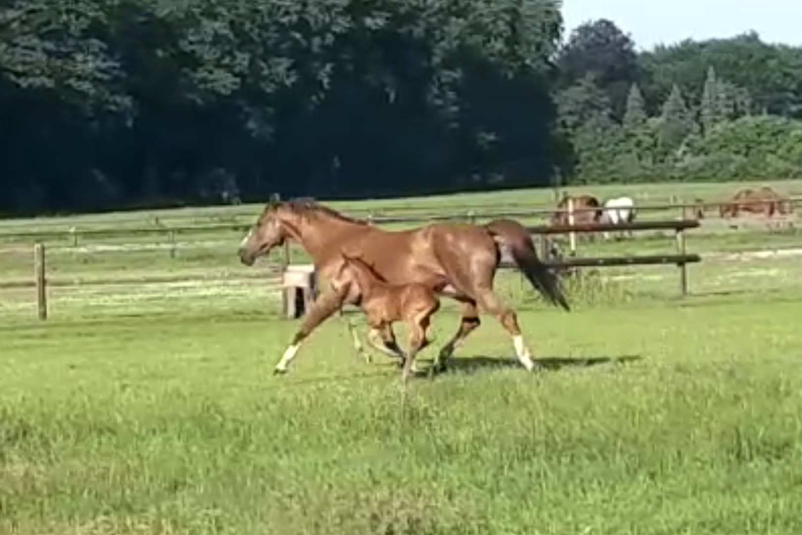 Ja, ik heb drie nakomelingen van Pretty Woman: het veulen van Ganesh Hero en de twee van Comme Il Faut. Ze hebben al enkele vrijspringoefeningen gedaan, maar ze zijn pas drie jaar en nog echte baby’s. We zullen zien wat de toekomst voor hen in petto heeft!