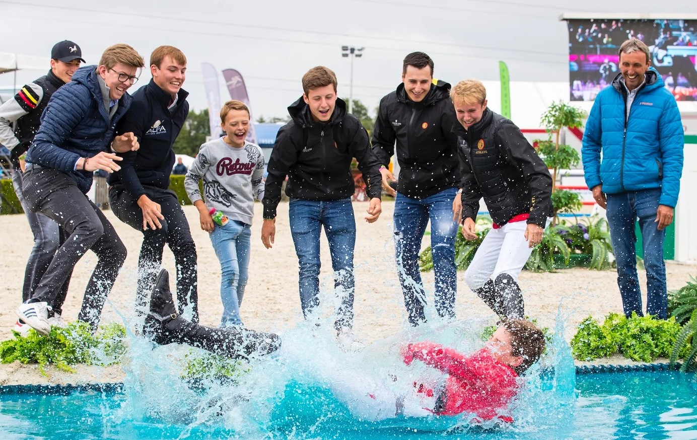 In 2019 ging Thibeau Spits kopje-onder in de waterbak op het Europees kampioenschap in Zuidwolde, waar hij individueel brons behaalde met Bellissimo. © Leanjo de Koster/FEI