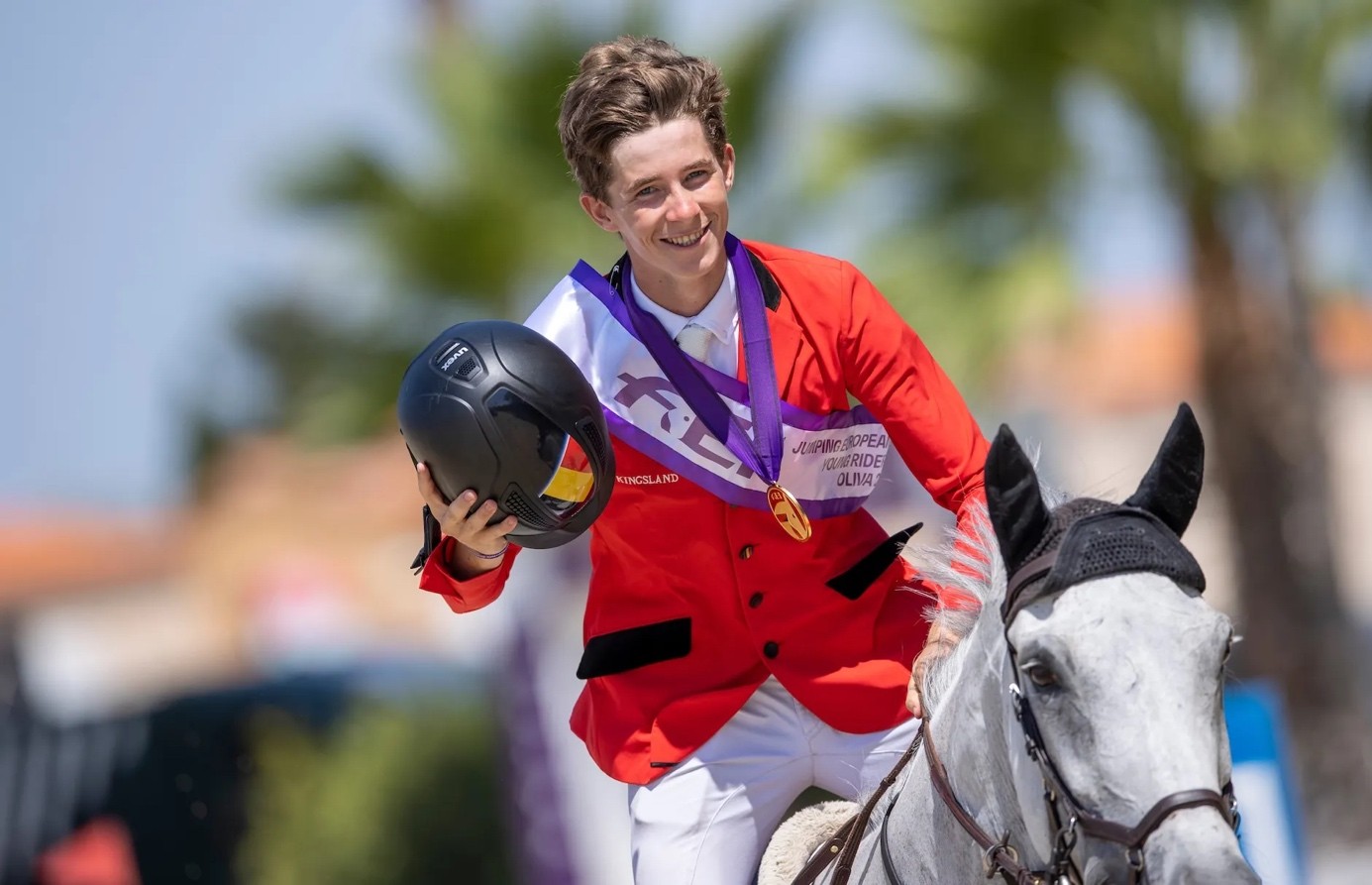 Thibeau Spits veroverde zijn eerste individuele titel op het EK in Oliva in 2022, in het zadel van Classic Touch DH, met wie hij ook Europees kampioen per team werd. © Dirk Caremans/Hippo Foto
