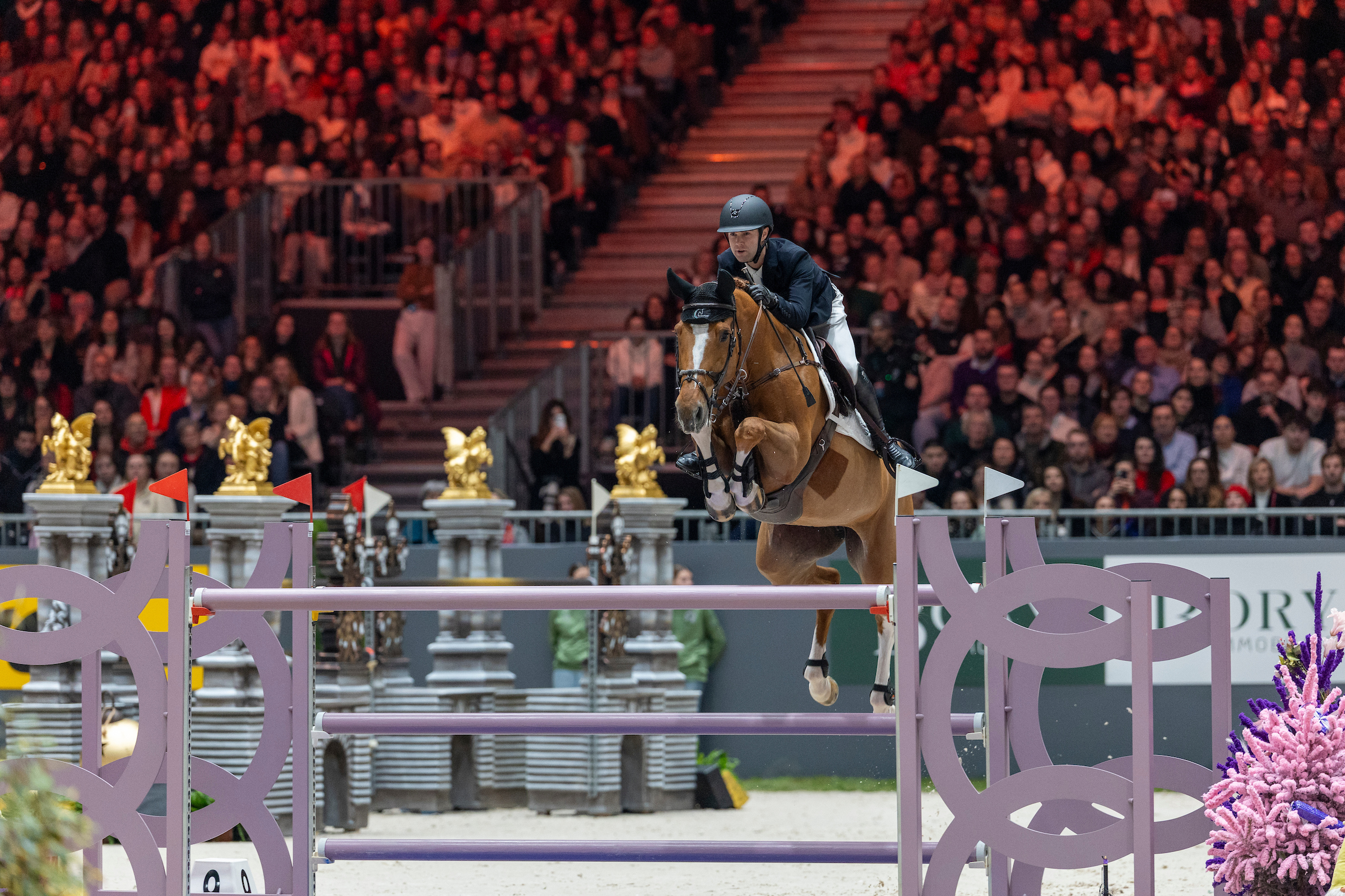 Toen Steve Guerdat, drievoudig winnaar van deze finale, als eerste van de vier foutloze combinaties mocht aantreden, ging er een golf van verwachting door de tribunes. Maar met Venard de Cerisy, het paard waarmee hij in 2023 nog triomfeerde, liep het dit keer mis: twee springfouten maakten een podiumplaats onmogelijk. Het contrast met zijn eerdere glorie was scherp voelbaar.