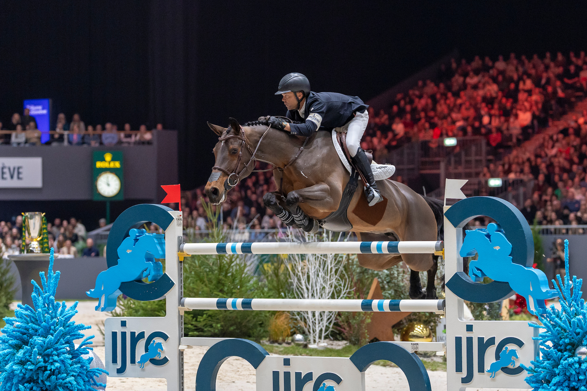 De avond in Genève voelde geladen vanaf het eerste moment dat de Rolex IJRC Top 10 Final van start ging. Het parcours, gebouwd op een hoogte van 1m60, lag er scherp en technisch bij, en de spanning in de hal was tastbaar. Twee omlopen stonden de ruiters te wachten, waarbij in de tweede ronde niet alleen de foutloosheid maar ook de klok beslissend zou zijn.