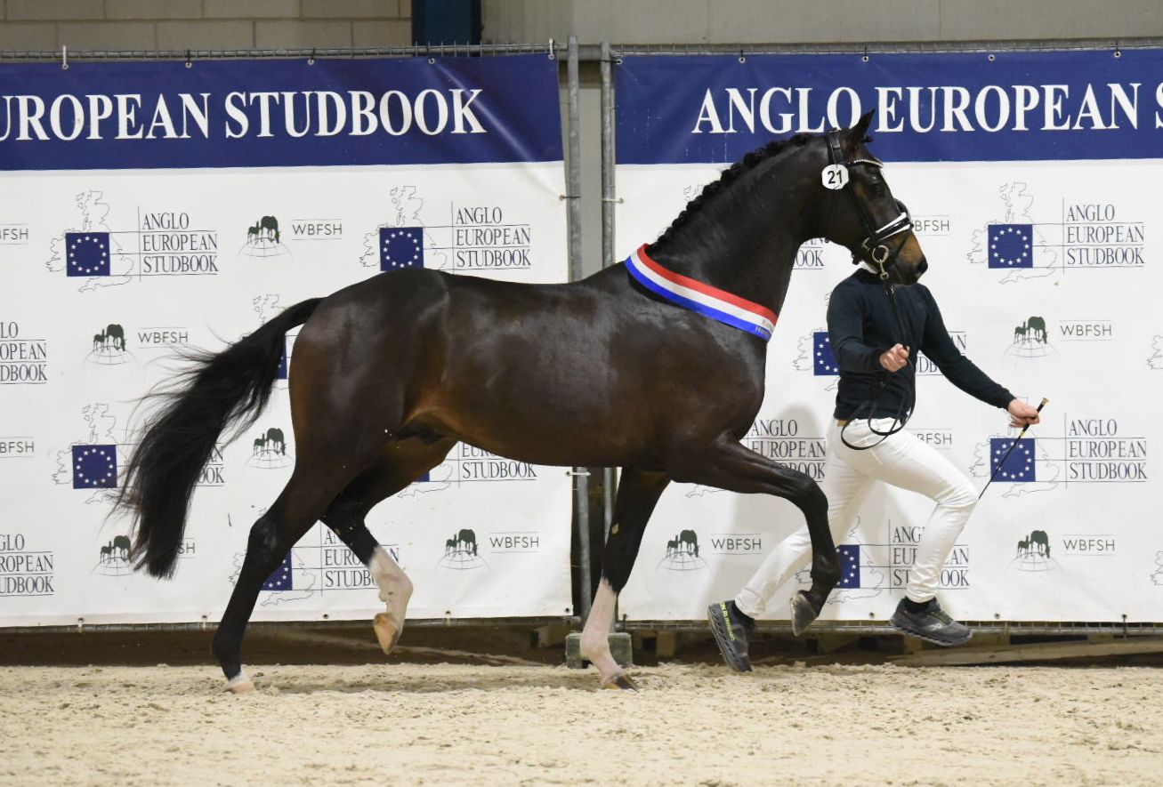 Zijn duidelijke hengst uitstraling, samen met correctheid, balans en kwaliteit in de beweging, maakten hem tot een waardig en complete kampioen.