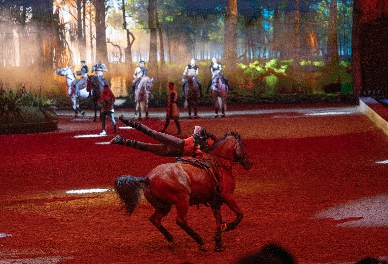 CAVALLUNA - Gate to the Otherworld is opgebouwd als een doorlopend verhaal waarin vrijheidsdressuur, rijtechniek, acrobatiek en artistieke elementen naadloos in elkaar overvloeien. Opvallend is dat nergens gekozen wordt voor effect ten koste van controle of rust. “Het tempo ligt hoog, maar het wordt nooit gejaagd,” vertelt Emma. “Alles blijft leesbaar, ook voor het paard.”