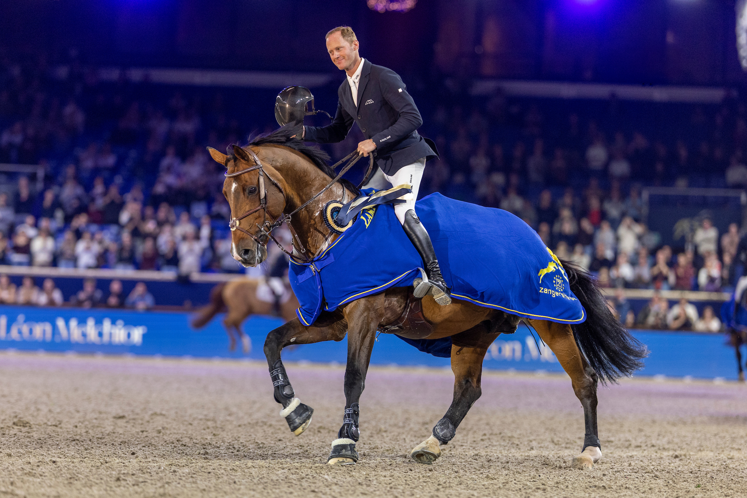 Maar Mechelen had nog een troef achter de hand. Als voorlaatste starter reed Niels Bruynseels de arena binnen, gedragen door het thuispubliek dat hem bijna vooruit leek te duwen. Met Chacco’s Lando OL, de bliksemsnelle zoon van Chacco Blue, vloog hij door de wendingen en haalde hij alles uit de kast. Toen de klok stilviel op 39,24 seconden, barstte de Nekkerhal los. De overwinning bleef in eigen land, en hoe.