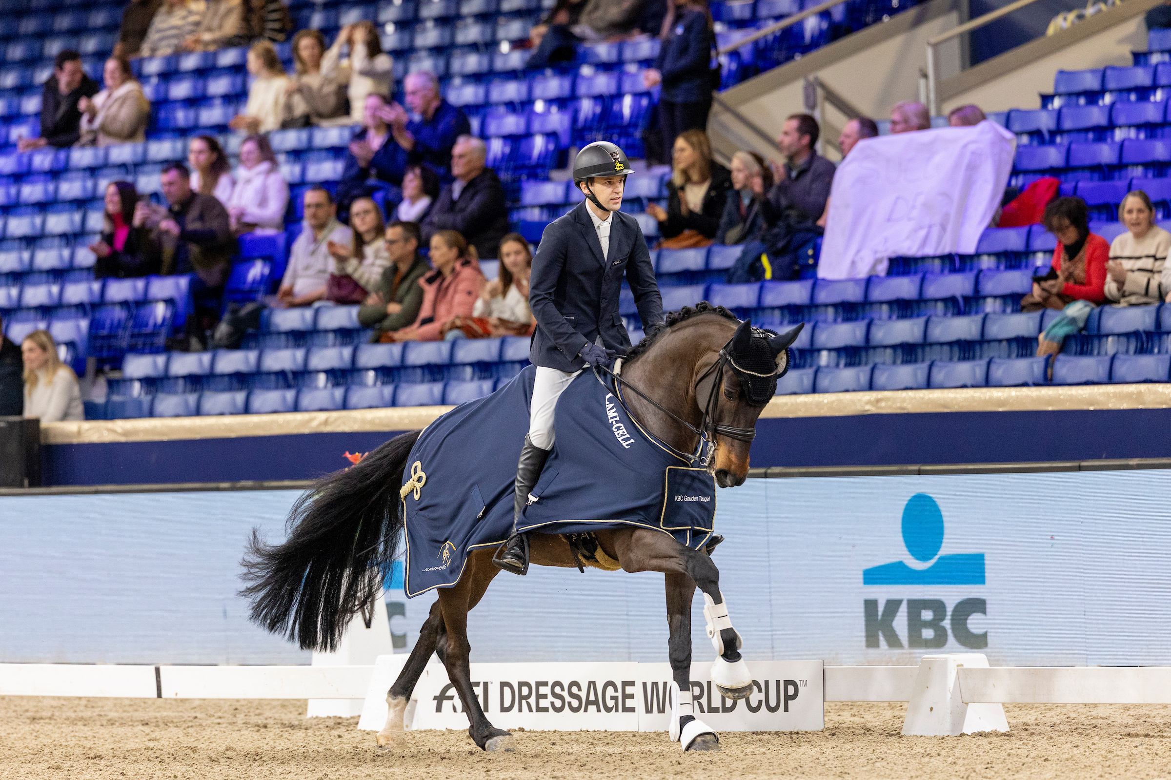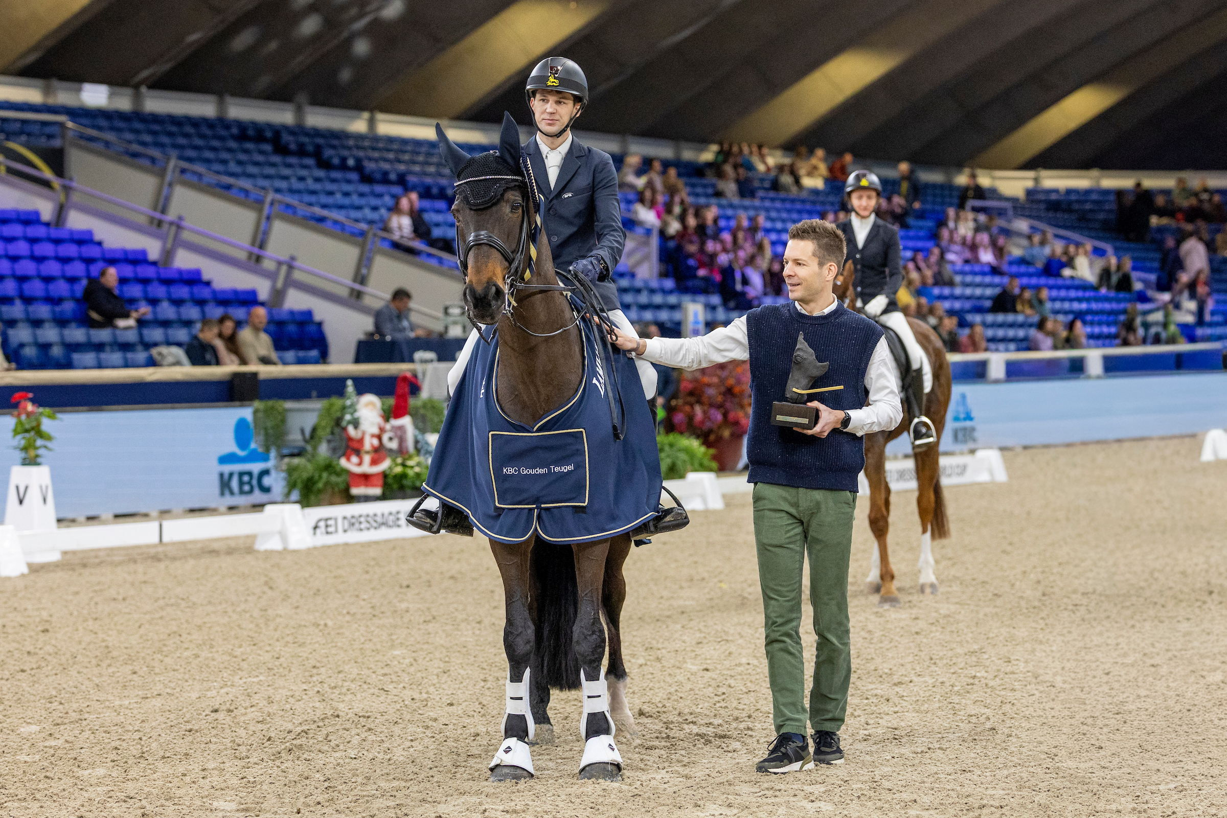 De vierde dag van Jumping Mechelen kreeg vanochtend een stijlvolle aftrap met de finale van de KBC Gouden Teugel, traditioneel één van de blikvangers voor de LRV-ruiters. De topvijf van het voorbije nationale kampioenschap in de hoogste reeks ZZ verscheen opnieuw in de piste, klaar voor een nieuwe krachtmeting op Vlaanderens Kerstjumping.