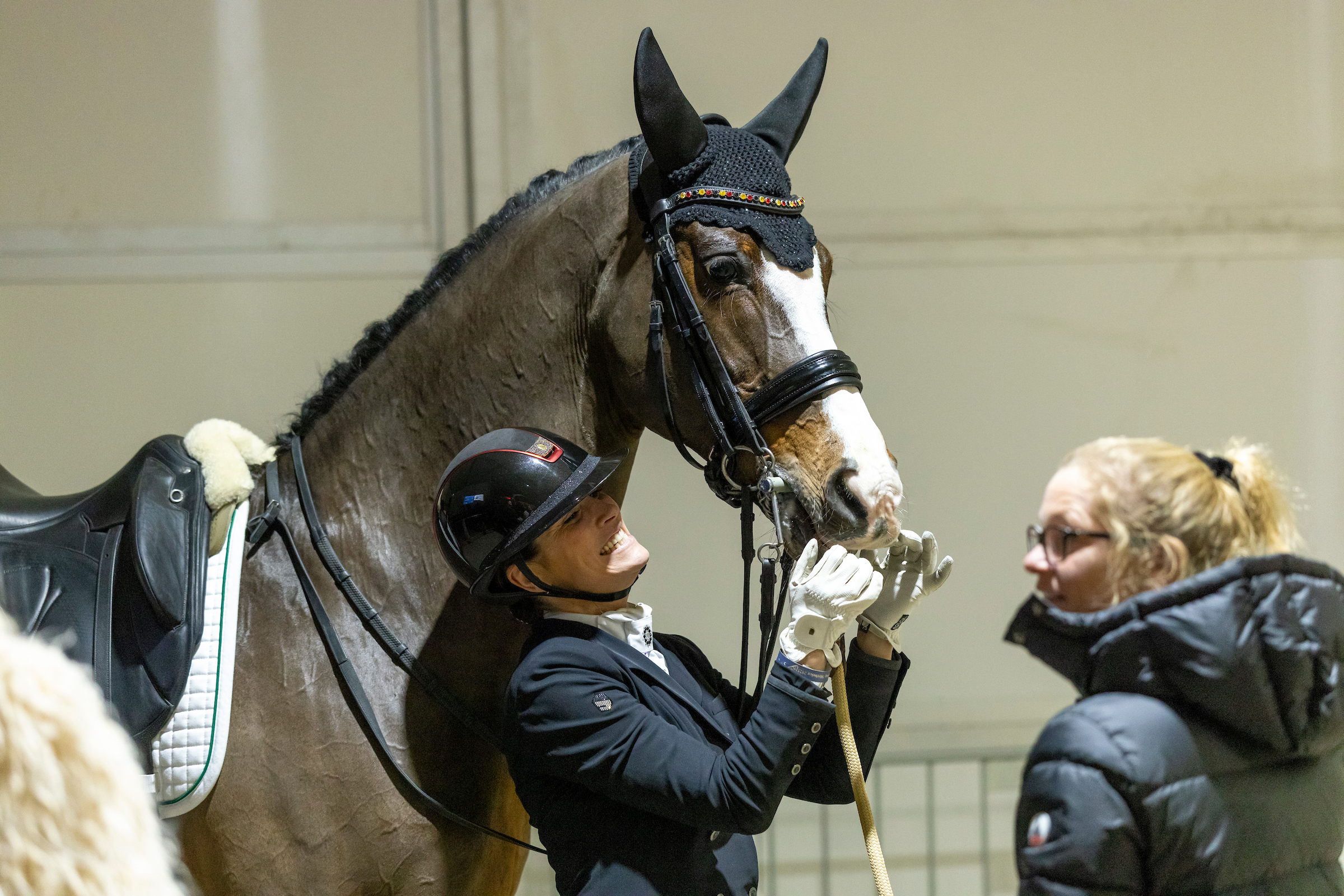 De jonge hengst stond voor een nieuwe uitdaging in de indoorarena. “Hij had nog nooit zo’n wedstrijd gelopen, met zoveel muziek, publiek en applaus. Dat is best spannend voor hem. Toch merkte ik duidelijk dat hij erg gefocust was op mij en op de proef. Ik voelde een speciale connectie, en dat is voor mij het belangrijkste.”