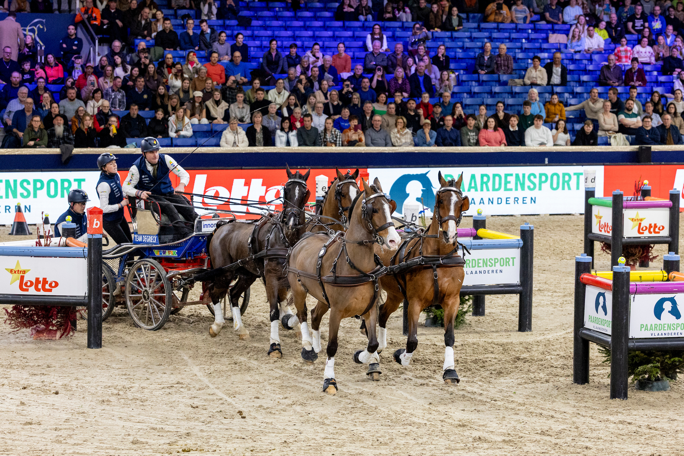 Jumping Mechelen 2025 zal de geschiedenis ingaan als een van de meest memorabele edities ooit. Na eerdere Belgische zeges in de World Cup Dressage en de World Cup Jumping, was het vanavond aan Dries Degrieck om de kroon op het werk te zetten. En dat deed hij met verve: in een bloedstollende finale schreef hij de Wereldbeker Mennen op zijn naam, waardoor België een ongeziene drie op drie neerzet in de Wereldbekerreeksen.