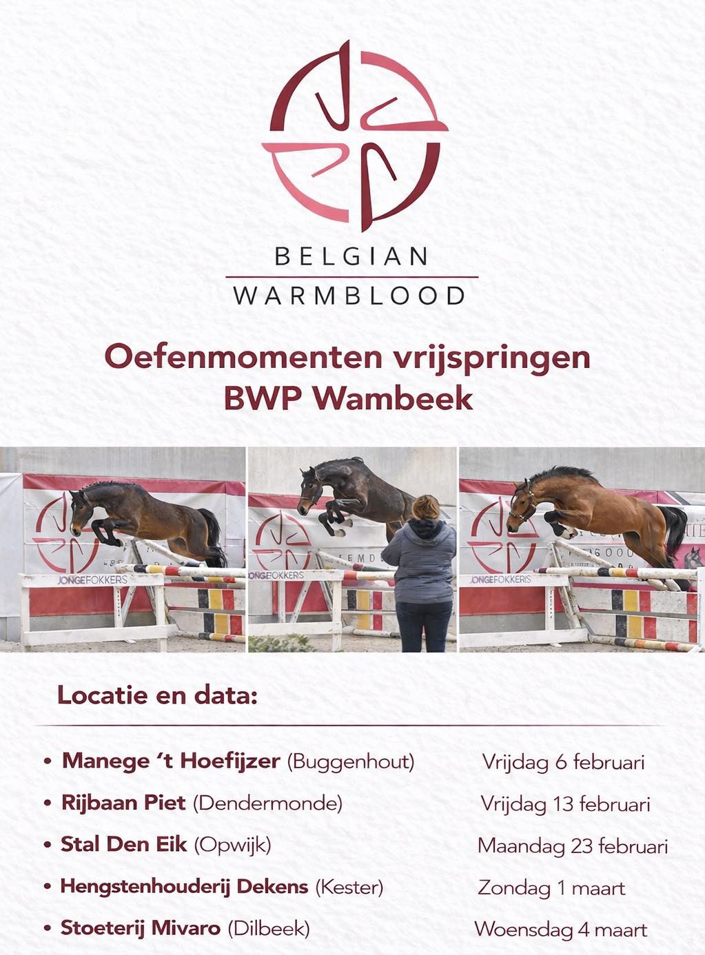 In aanloop naar de wedstrijd vrijspringen op zaterdag 21 maart bij Hengstenhouderij Dekens in Kester, organiseert BWP Wambeek een reeks van vijf oefenmomenten verspreid over verschillende locaties in de regio.