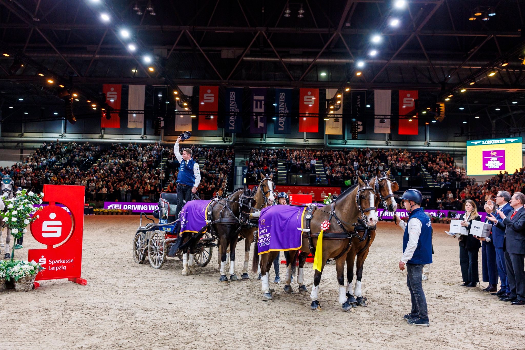 Dries Degrieck is het jaar begonnen zoals hij het in Mechelen had afgesloten, met een Wereldbeker overwinning. Tijdens de achtste en laatste manche van de FEI Driving World Cup in Leipzig wist onze landgenoot na zijn tweede plek in de Warm-Up op vrijdag dit keer de overwinning te behalen. Met twee overwinningen op rij mag hij zich stilaan tot één van de favorieten voor de Wereldbeker finale in Bordeaux (5-8 februari) zien.