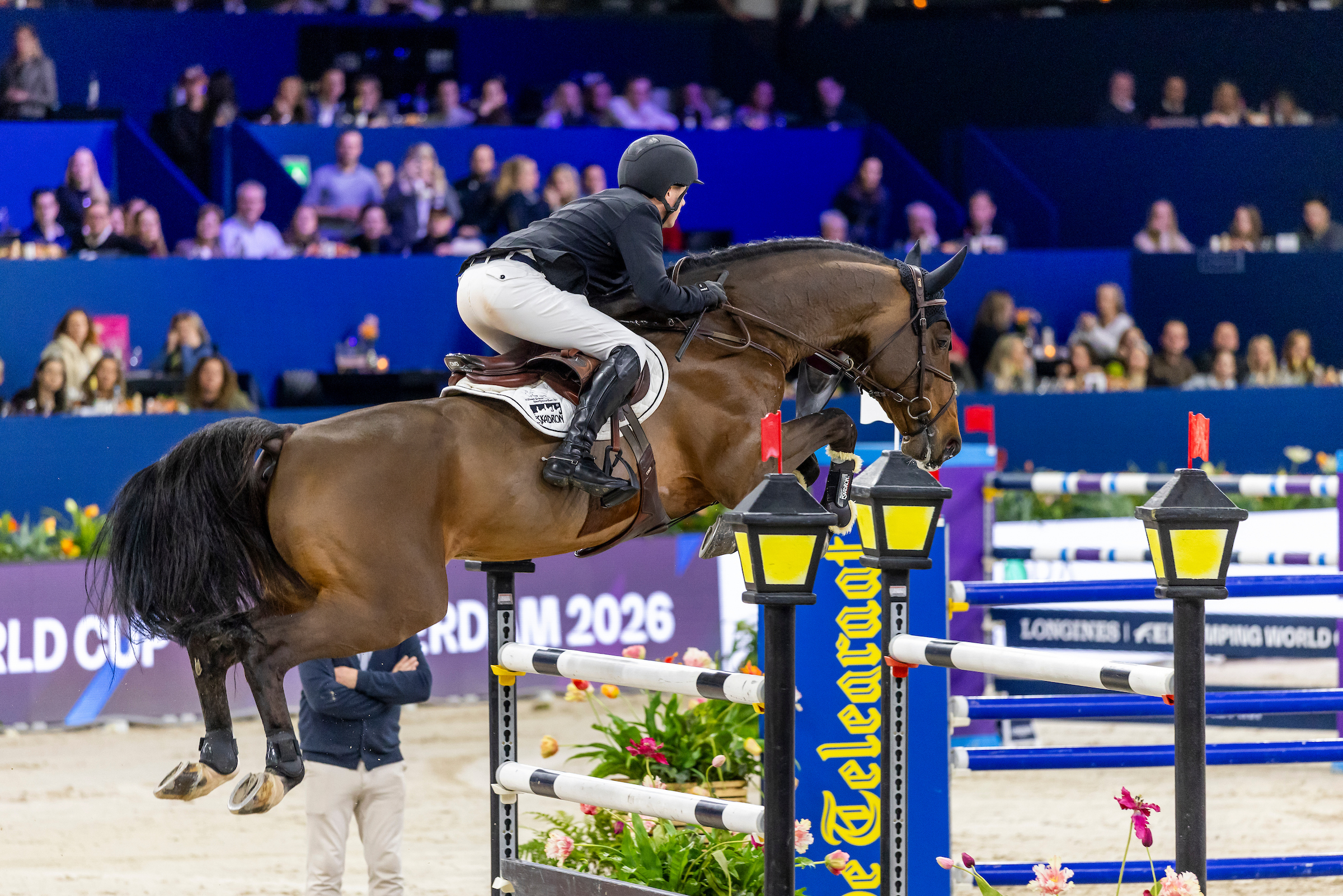 Willem Greve en Grandorado TN N.O.P. waren gisterenavond op Jumping Amsterdam onverslaanbaar in de Telegraaf Prijs. De zoon van Eldorado van de Zeshoek staat niet bekend als een speedpaard, maar Greve en Grandorado lieten met een razende rit tegen de klok maar liefst 15 concurrenten achter zich.