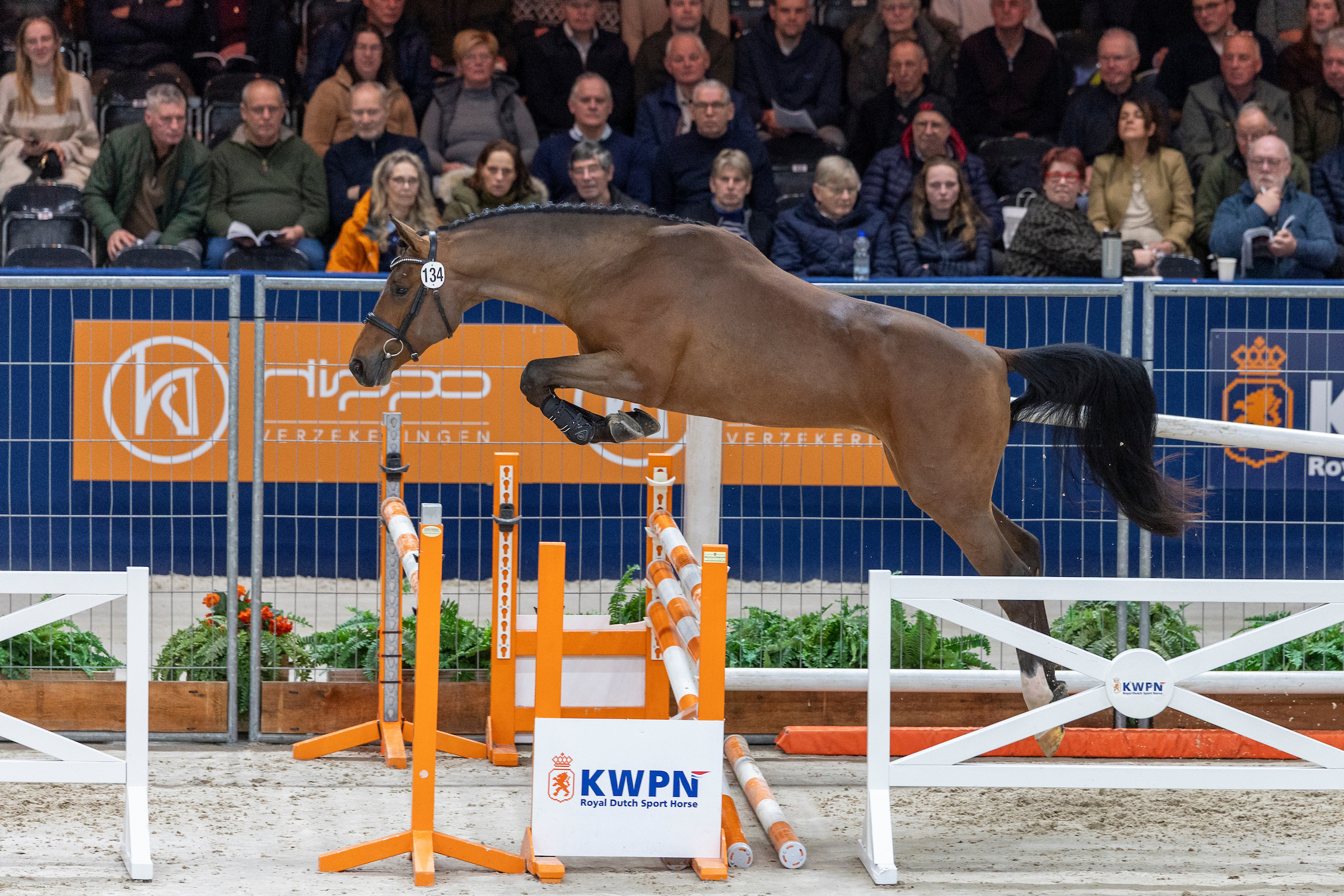 Maar liefst twaalf aangewezen springhengsten maakten vanmiddag deel uit van de negentienkoppige selectie van de KWPN Select Sale. Eén van deze aangewezen hengsten werd ook de veilingtopper van de KWPN Select Sale editie 2026, waarin wederom internationale topruiters wisten te investeren in jong talent. De gemiddelde prijs van bijna 32.000 euro lag weer hoger dan voorgaande jaar, wat de kwaliteit van deze selectie onderstreept.