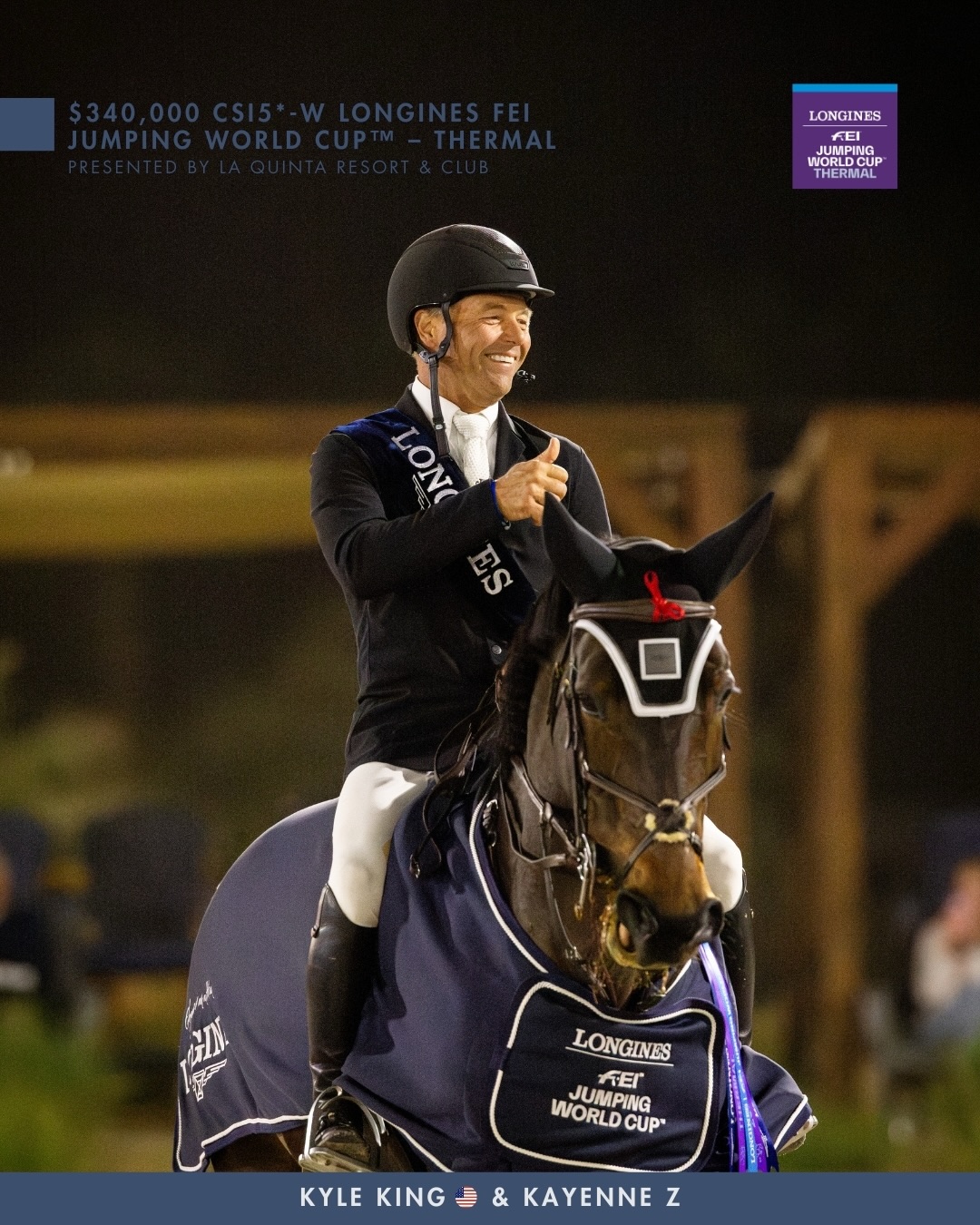 De dochter van Kannan werd gefokt door Kristof Engelen en kende een opmerkelijk traject richting de wereldtop. Tot ruim een jaar geleden sprong de merrie nog in België onder het zadel van Ann Carton Grootjans. Voorheen zagen we ook Nico en Caro Baerts aan het werk met Kayenne Z. Voor het duo King–Kayenne Z is deze overwinning een bekroning van hun sterke prestaties het voorbije jaar. Zo werden ze in september ook al tweede in de Rolex Grand Prix van Calgary.