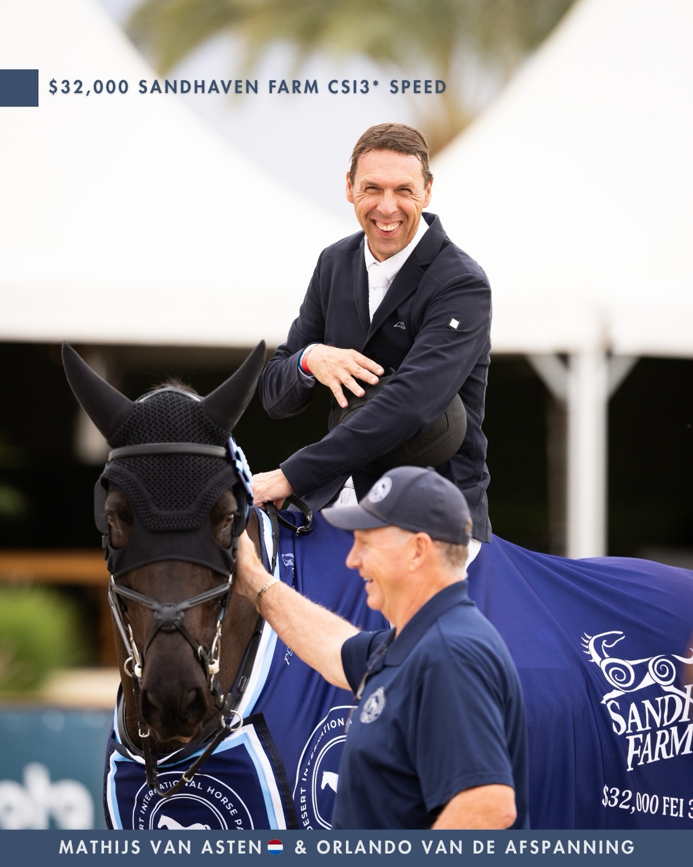 Tijdens de 1m45 kwalificatieproef voor de CSI3* Grote Prijs in het Amerikaanse Thermal heeft de Nederlander Mathijs Van Asten voor een knappe overwinning gezorgd. Hij rekende hiervoor op Orlando van de Afspanning, het BWP-fokproduct van Veronique Vanbrabant. De zoon van Kartouzo van ’t Kathof genoot zijn opleiding bij Yana Jansegers.