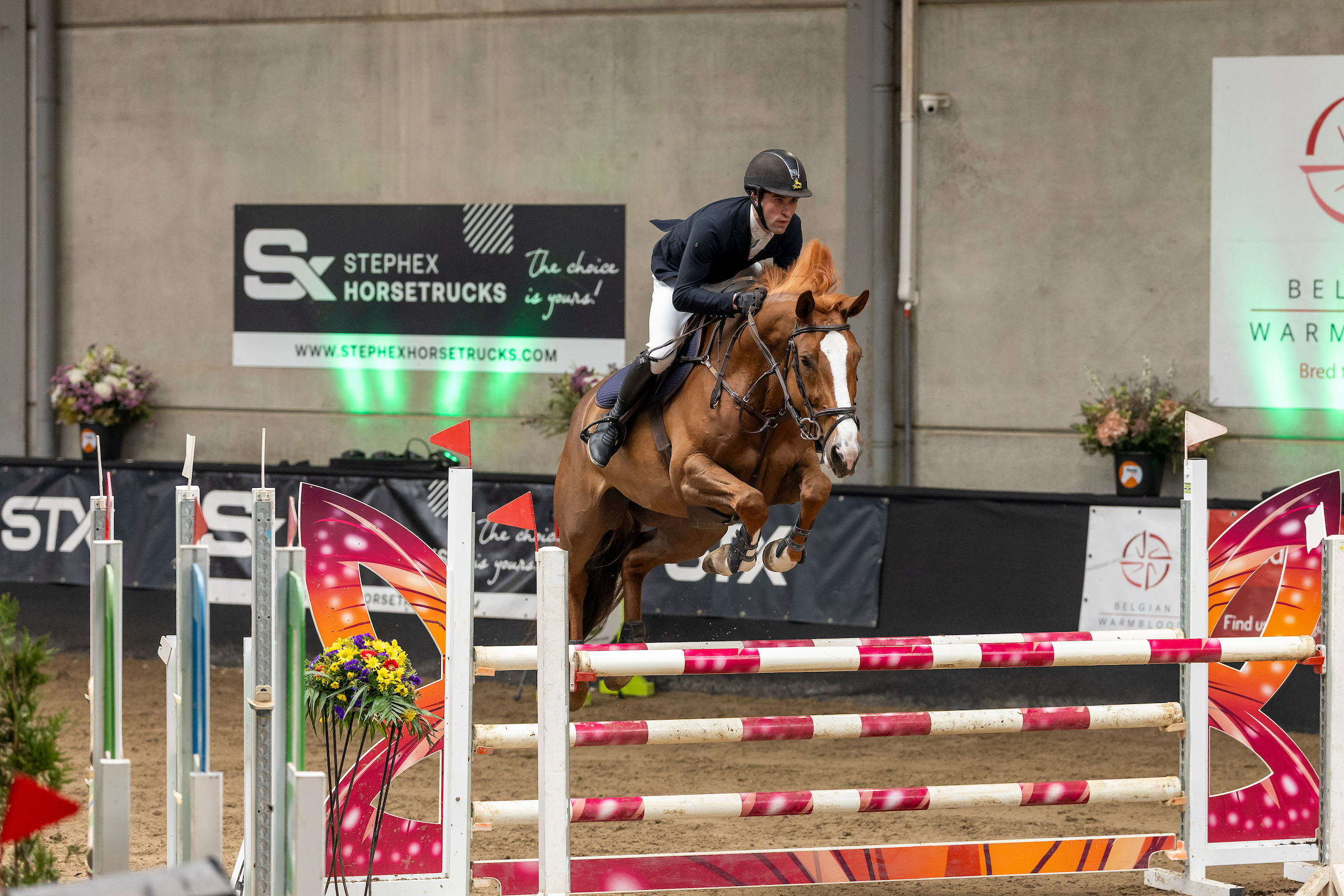 De ruiter van Merksplas bleef voor op Kimberley Eerlings en Rox (v. Le Blue Diamond van ’t Ruytershof). Het brons ging naar Elise Vermeiren met Umani-V (v. Naxcel V). Emma Van Doorslaer werd vierde met Coachello Z (v. Classic Orange Z).