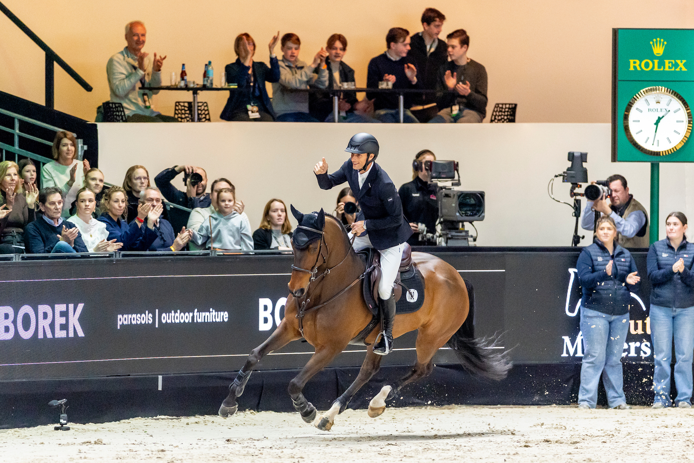 Voor aanvang van de Rolex Grand Prix werd op The Dutch Masters nog een 1m50-rubriek afgewerkt. Deze proef kreeg een winnaar van formaat, Europees kampioen Richard Vogel. Hij rekende hiervoor op de 11-jarige BWP’er Phenyo van het Keysersbos, een zoon van Corydon van T&L, gefokt door Hans Van Den Bossche en Heidi De Keyser.
