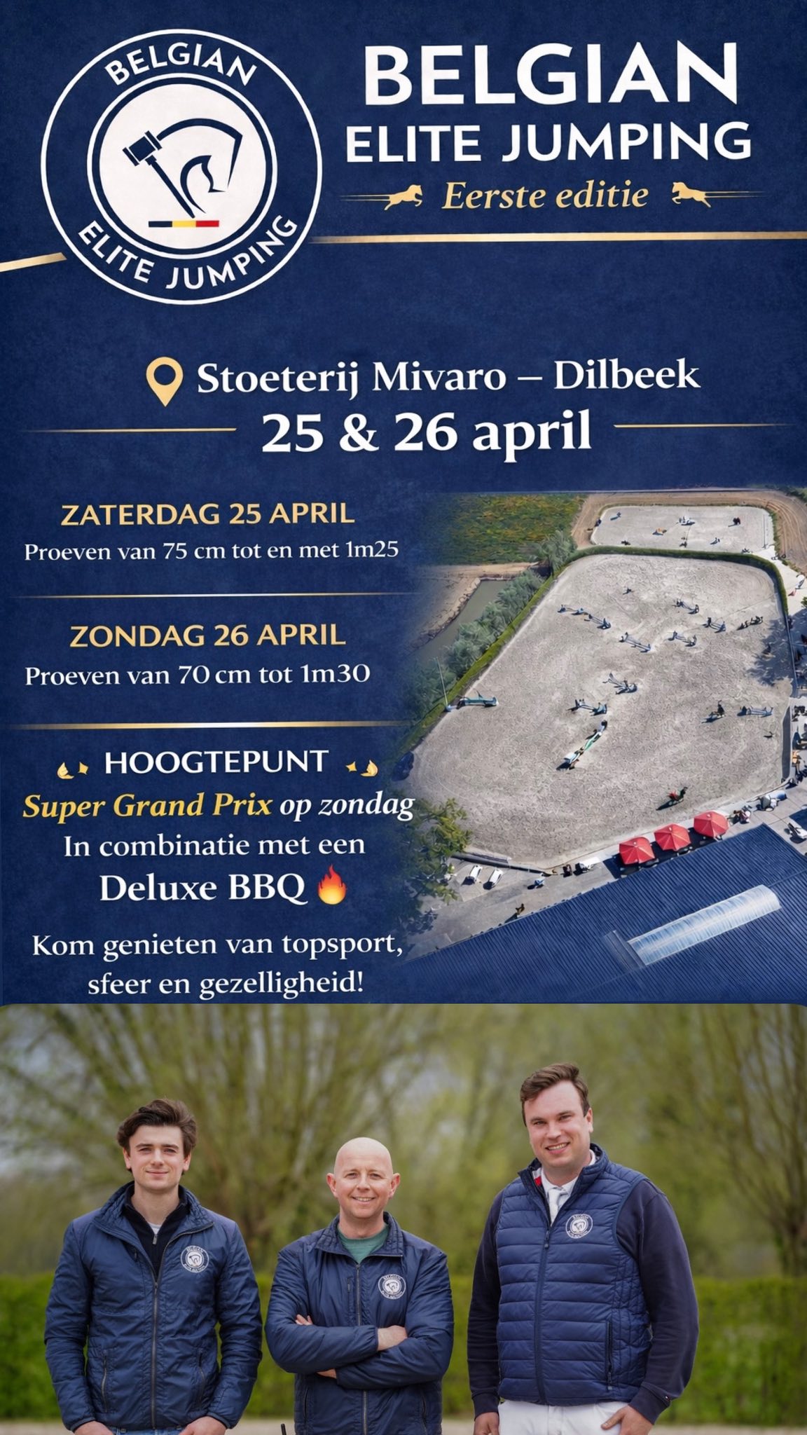 Belgian Elite Jumping strijkt op 25 en 26 april neer bij Stoeterij Mivaro in Dilbeek en belooft een weekend te worden dat sportliefhebbers, recreatieve ruiters én supporters niet willen missen. Met topsport, gezelligheid en een heerlijke BBQ wordt dit een van de meest toegankelijke en sfeervolle evenementen van het voorjaar. Iedereen is welkom om deel te nemen of te komen supporteren.