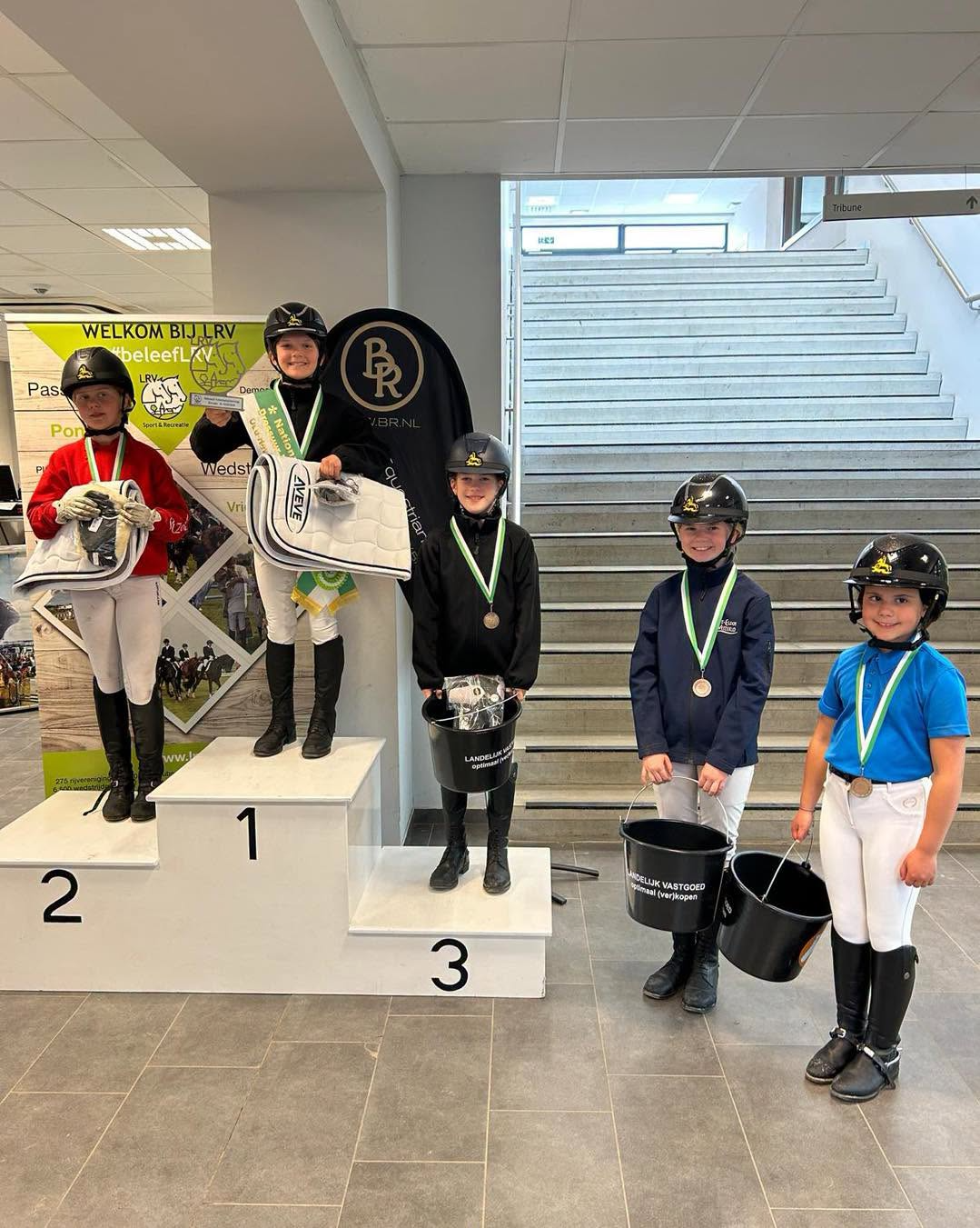 Goud voor Ella Van Avermaet (LRV Moerzeke) met Sumba Van 't Neerhof (Oxford van de Mespeleir x Ten Ankers Bileander) in de reeks BL1, de hoogste dressuurreeks voor pony’s uit de stokmaatcategorie ‘B’ (van 1.17 tot minder dan 1.27m). Ella-Louise Thiry (LRV Hoeleden) kwam met Valerio, heel dicht in de buurt, maar moest tevreden zijn met zilver. Lien Matterne, pakte brons met Timon Tar (Arenberg's Maurits x Vivienne's Vision of Freedom), voor Lauren De Gussemé (LRV Kerksken) met haar Ulrik Van De Nieuwe Heide (Comm's Forest Dille x Ive van de Delthoeve) en opnieuw Lien Matterne met Lente.