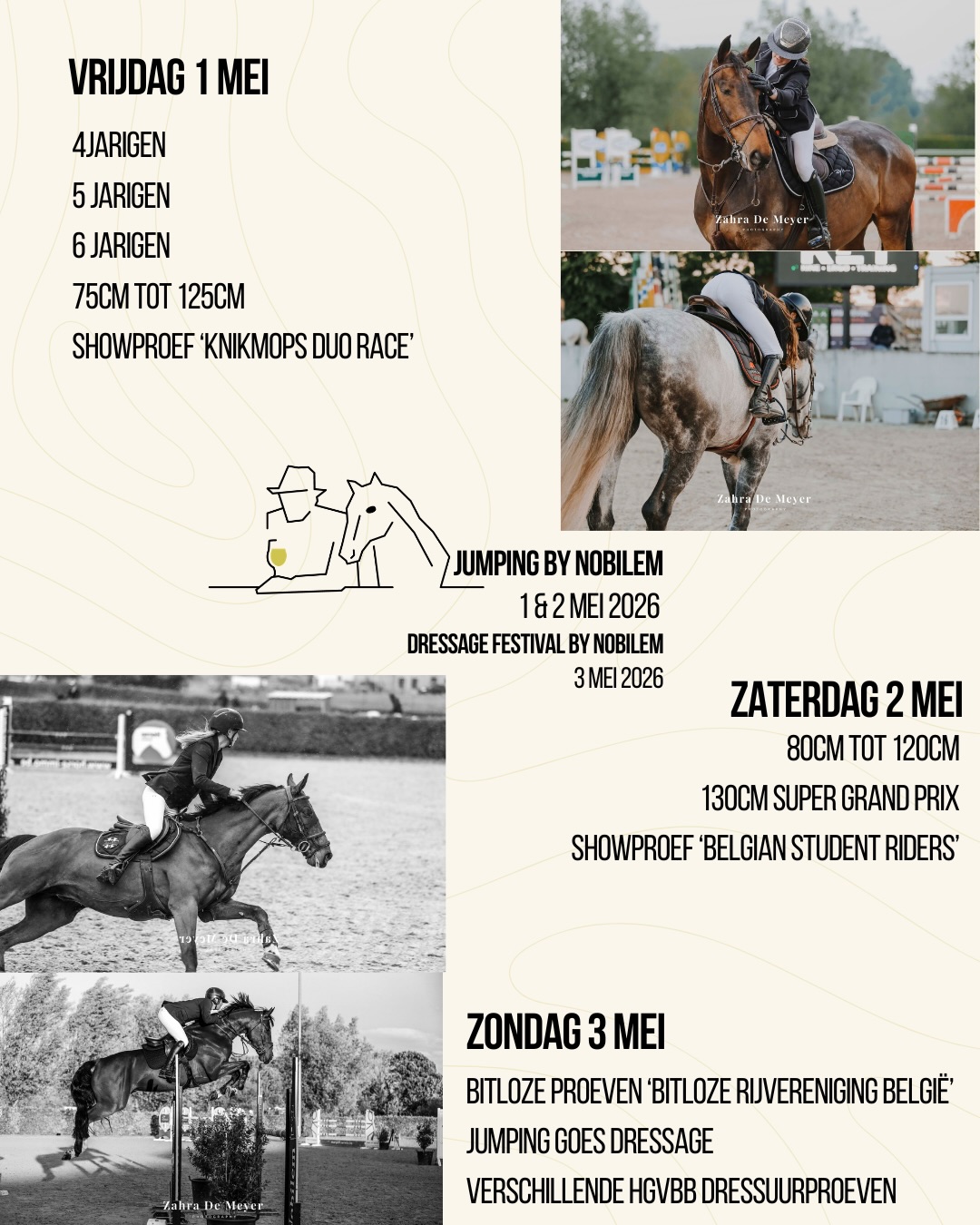Kortom: drie dagen sport, plezier en ambiance — voor élke ruiter, élk niveau en élke discipline. Schrijf je nu in en beleef Jumping by Nobilem vanop de eerste rij.