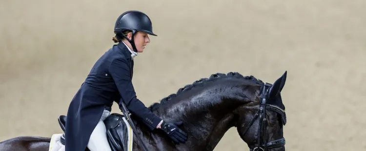 We zijn jong, Flynn is ook maar 9 jaar, debuteren in het circuit en rijden ongedwongen onze proef, en dat wordt gewaardeerd. Natuurlijk is het nog niet af, het moet en kan nog allemaal veel beter. Feit is dat ik aan Flynn een betrouwbare partner heb die me nooit in de steek zal laten. Hij zal nooit grote fouten maken en dat maakt een groot verschil voor mij. Dan rijd je met een gerust gemoed de ring in, toon je zelfzekerheid en overtuigingskracht. Een stabiel paard geeft een stabiele ruiter. Dat werkt versterkend en dat vertrouwen legt de basis voor 70%. Ik weet dat ik met Flynn al mijn oefeningen kan rijden voor een 7. De oefeningen zijn nog niet af, ik werk elke dag naar die 7,5 en dat moet op termijn haalbaar zijn.